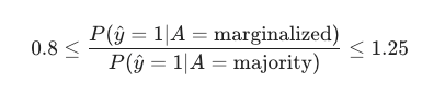 Mathematically, the goal is often to achieve Disparate Impact (DI) parity, where: